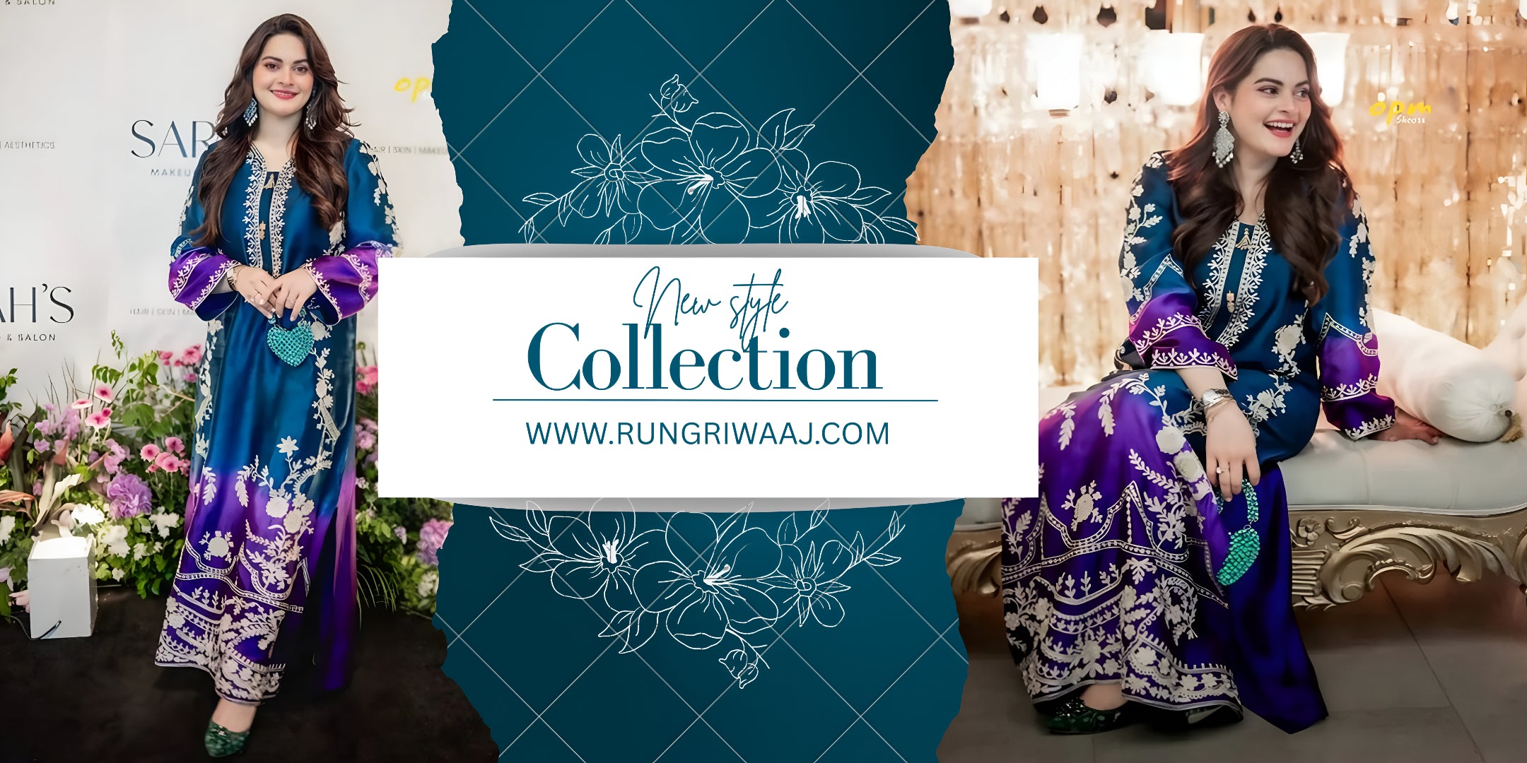 Introducing Morning Glory, a graceful 2-piece digital printed suit crafted from luxurious premium silk. Designed with a rich teal-to-violet gradient and elegant floral digital print, this outfit delivers a refined eastern look without heavy embellishment.